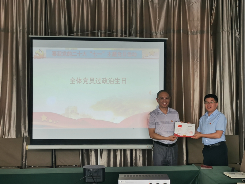 恰逢黨的101周年生日,集團公司黨委書記王峰圍繞“什么是中國共產(chǎn)黨,中國共產(chǎn)黨干什么”為主題講授一堂精彩紛呈的黨課。公司黨委組織兩個支部黨員集體過“政治生日”,黨委班子成員為20名黨員送上記載每位黨員入黨日期的黨員政治生日賀卡并致以祝福。兩名黨員代表重溫入黨志愿書,回顧入黨初心,強化黨員意識,提醒大家時刻不能忘記自己的“第一身份”,積極踐行共產(chǎn)黨員的使命與擔(dān)當(dāng)。